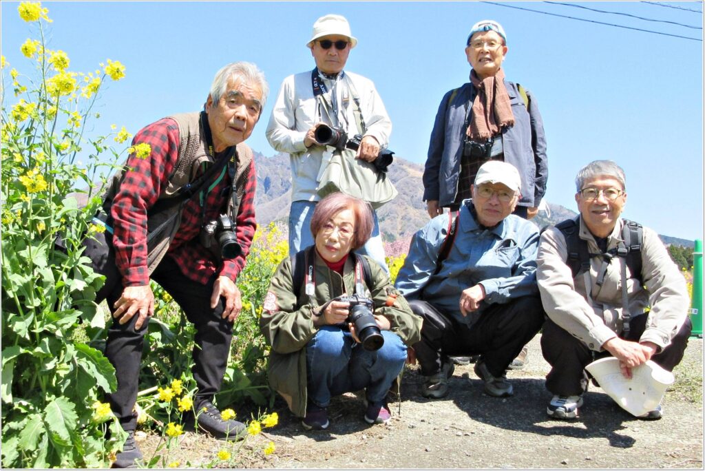 講師の武田先生と参加者6名、計7名が集合しました。サクラミチでの撮影会は2024年(令和6年)4月10日(水曜日)以来2年振りでした。5名は相乗りで近くの講師の知人宅に駐車し歩いて現場へ。2名は個人で現場へ。内1名は鍋の平キャンプ場に駐車し約20分歩いて現場へ。小生は「高森町民グラウンド」に駐車し、約5分間、無料のシャトルバスに乗車し現場へ。尚、観光客が増加しシャトルバスは今年から開始したそうです。「サクラミチ」も進化していいですね。