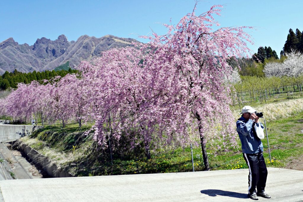 4月8日(水曜日)快晴、サクラミチ(熊本県阿蘇郡高森町)で撮影会を実施しました。晴天に恵まれ、桜も見ごろで多くの風景を撮影出来ました。以下概略報告します。